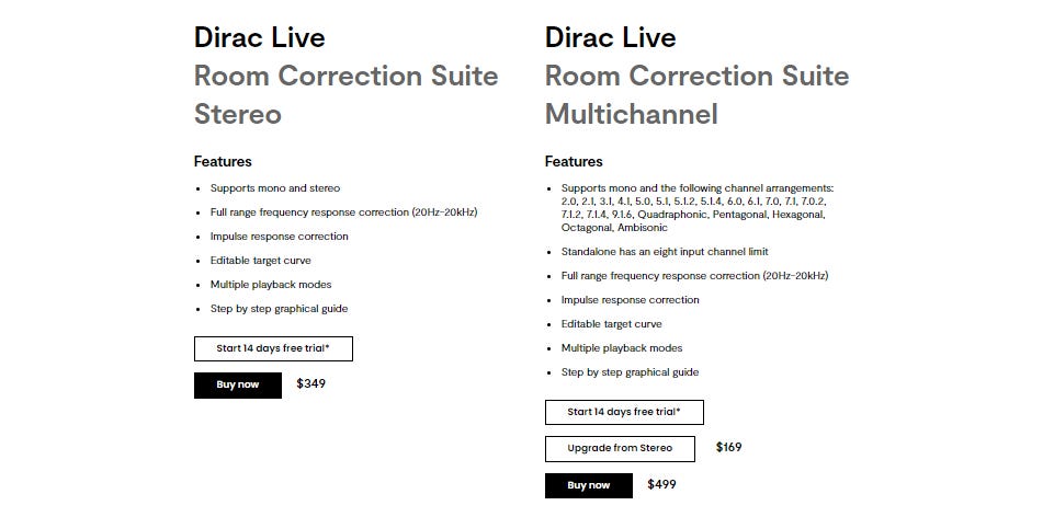 My thoughts: Dirac Live is the heavy-hitter of the bunch. If you're serious about room correction and don't mind a bit of complexity, it's worth considering. The time-domain correction is remarkable for spatial accuracy.