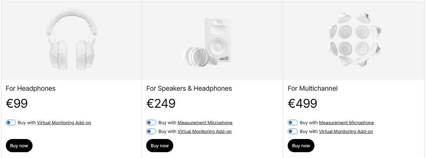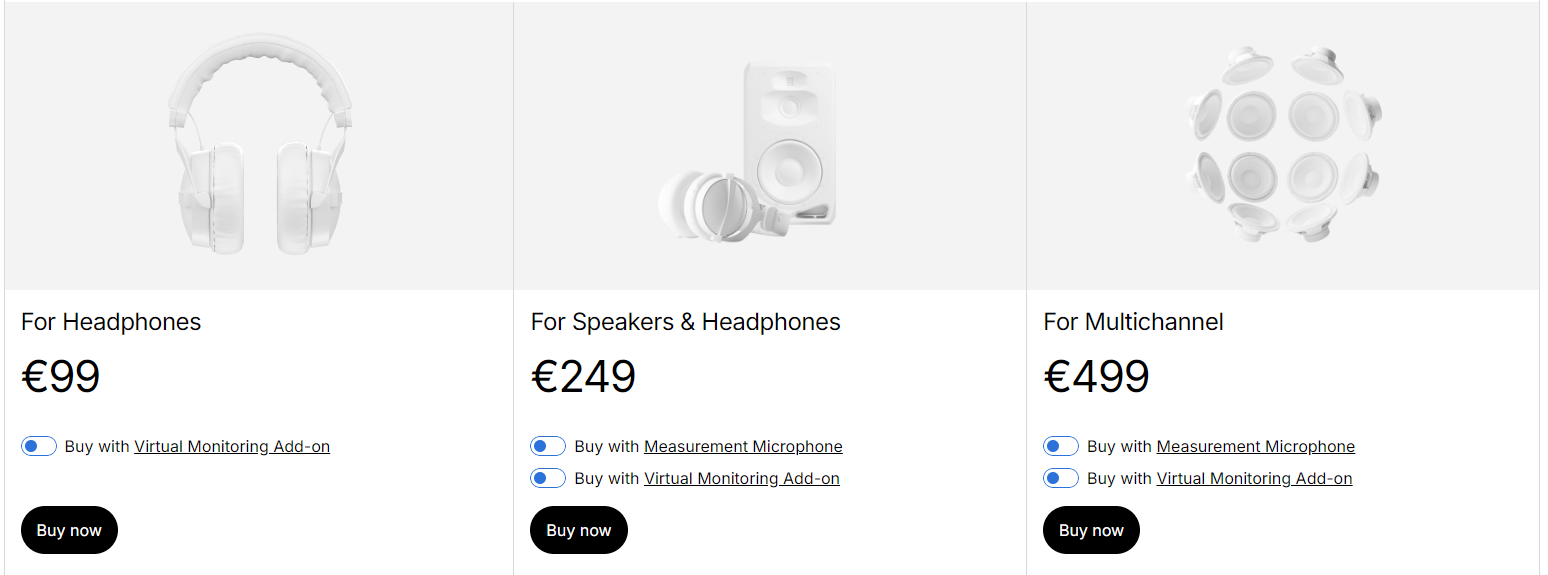 There are 3 different Pricing models. Headphones, Speakers and Headphones or Multichannel